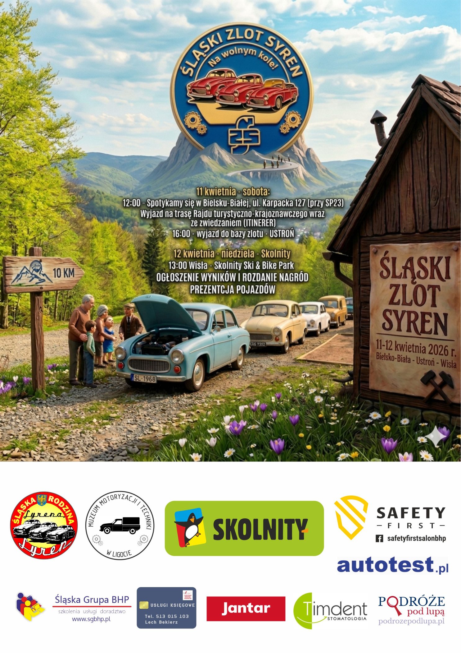 Spotkanie miłośników Syren rozpocznie się 11 kwietnia 2026 r. (sobota) o godzinie 12:00 w Bielsku-Białej przy ul. Karpackiej 127, gdzie poczciwe „skarpety” będą gośćmi Pikniku Szkolnego organizowanego przy Szkole Podstawowej nr 23 i wezmą udział w Szkolnym „Rajdozlotcie” pojazdów, który jest formą rajdu turystyczno-krajoznawczego wraz ze zwiedzaniem.