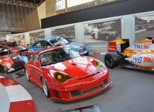 Idąc dalej można zanurzyć się w świecie motorsportu. Ponad 20 samochodów wyścigowych (F1, GT, rajdowe) zaprezentowanych jest w dynamicznej scenerii z podniesionym zakrętem, polami startowymi i historycznymi padokami.