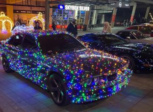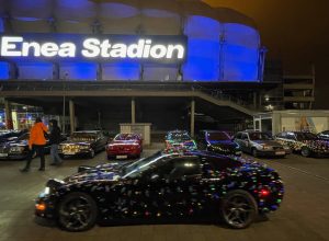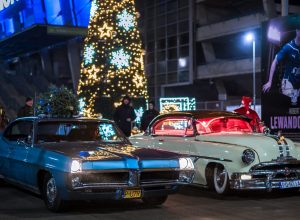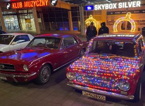 Niezwykłego kolorytu wydarzeniu nadały świąteczne „przebrania” samochodów – i to nie byle jakich. Pojawiły się amerykańskie klasyki z lat 50. i 60. XX wieku, Mercedes Ponton W105, kilka egzemplarzy Porsche z choinkami na dachach, a największą furorę zrobiło dziesięć Saabów z różnych lat produkcji, ustawionych w jednym rzędzie.