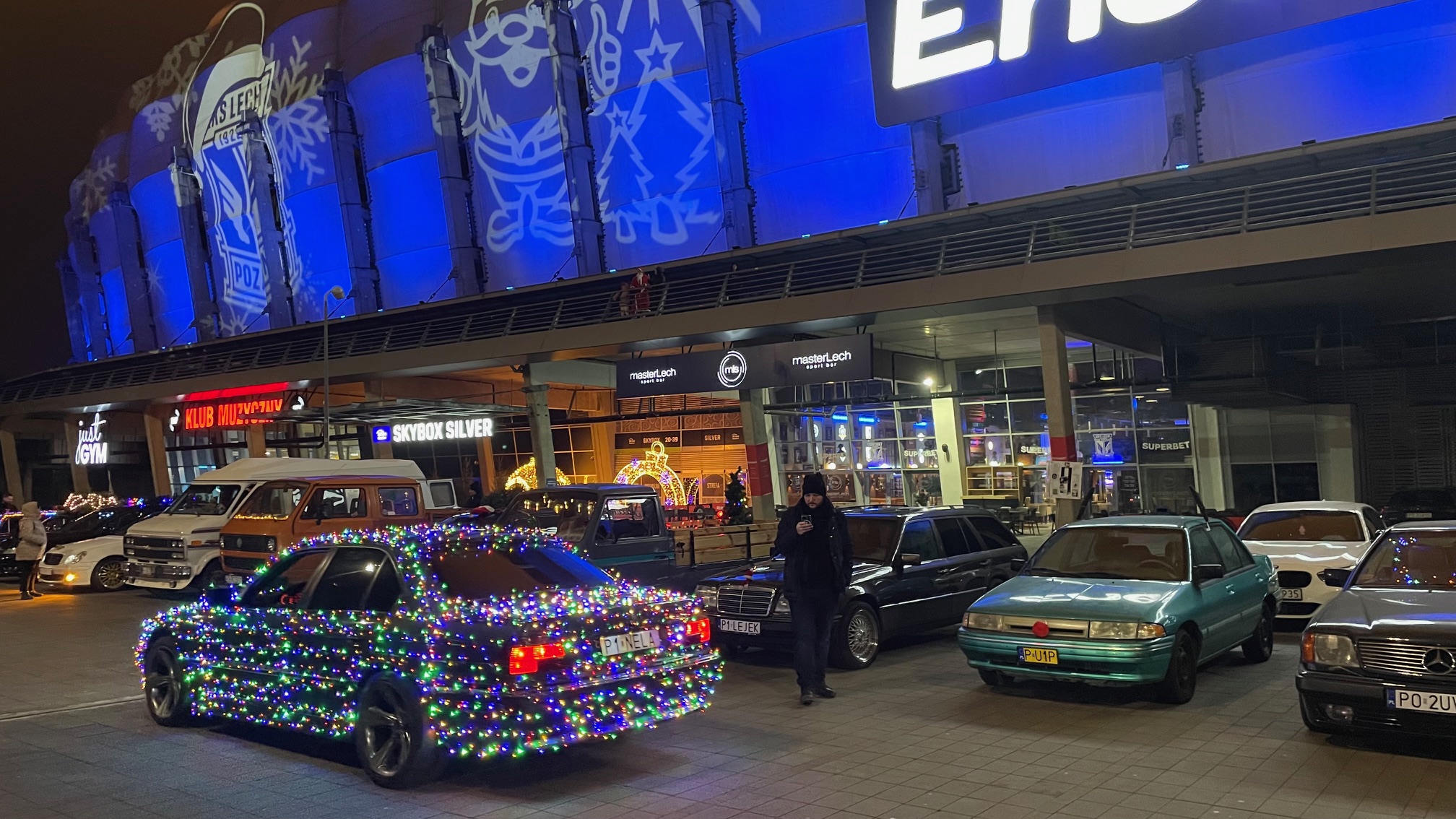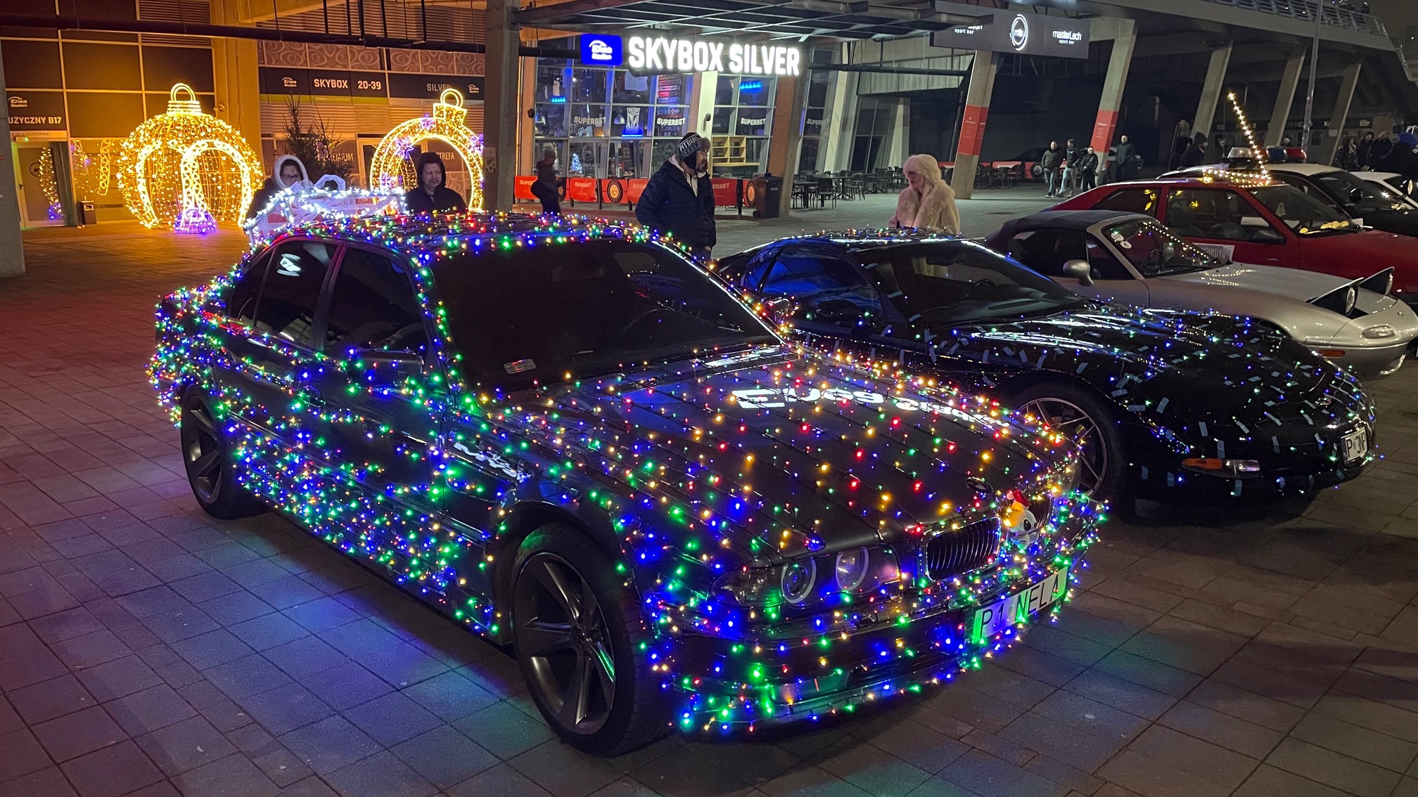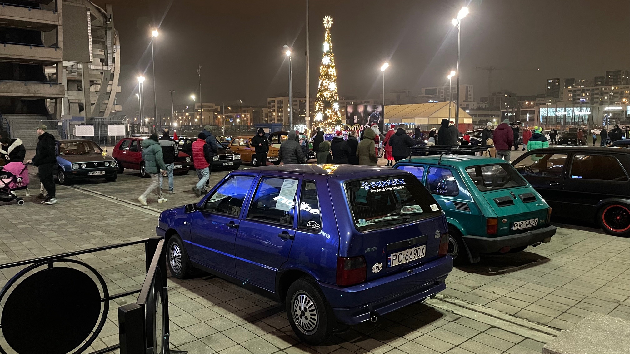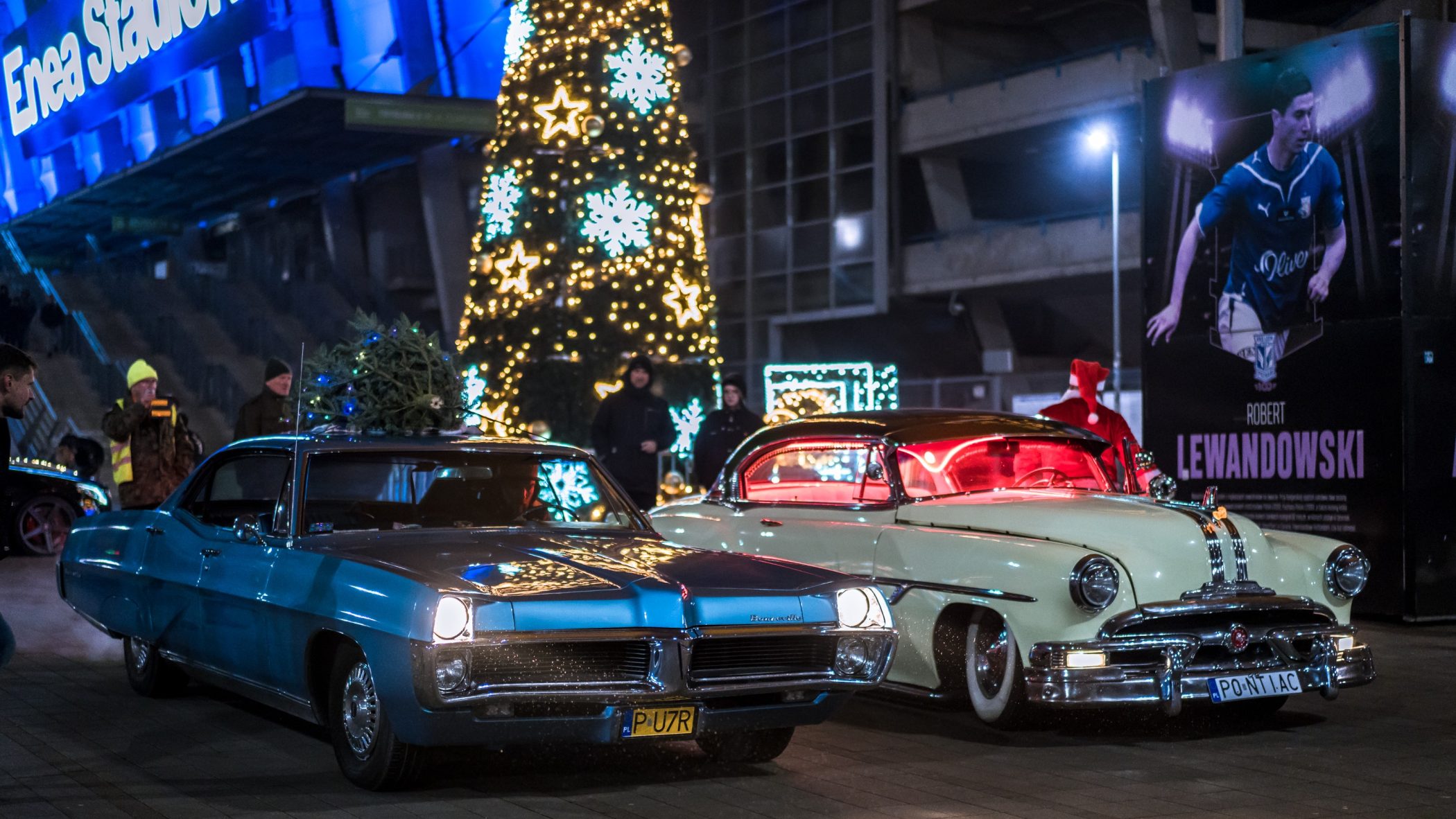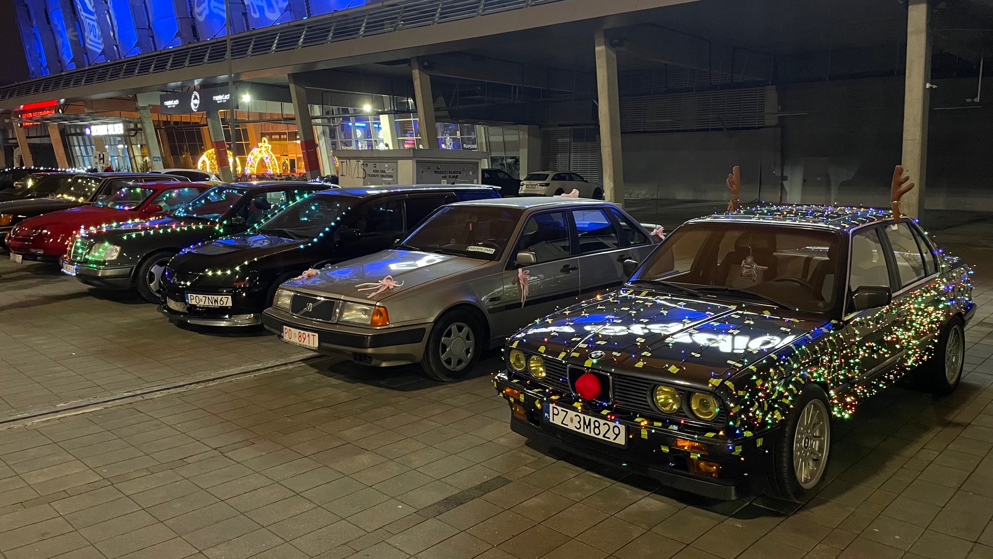 Niezwykłego kolorytu wydarzeniu nadały świąteczne „przebrania” samochodów – i to nie byle jakich. Pojawiły się amerykańskie klasyki z lat 50. i 60. XX wieku, Mercedes Ponton W105, kilka egzemplarzy Porsche z choinkami na dachach, a największą furorę zrobiło dziesięć Saabów z różnych lat produkcji, ustawionych w jednym rzędzie.
