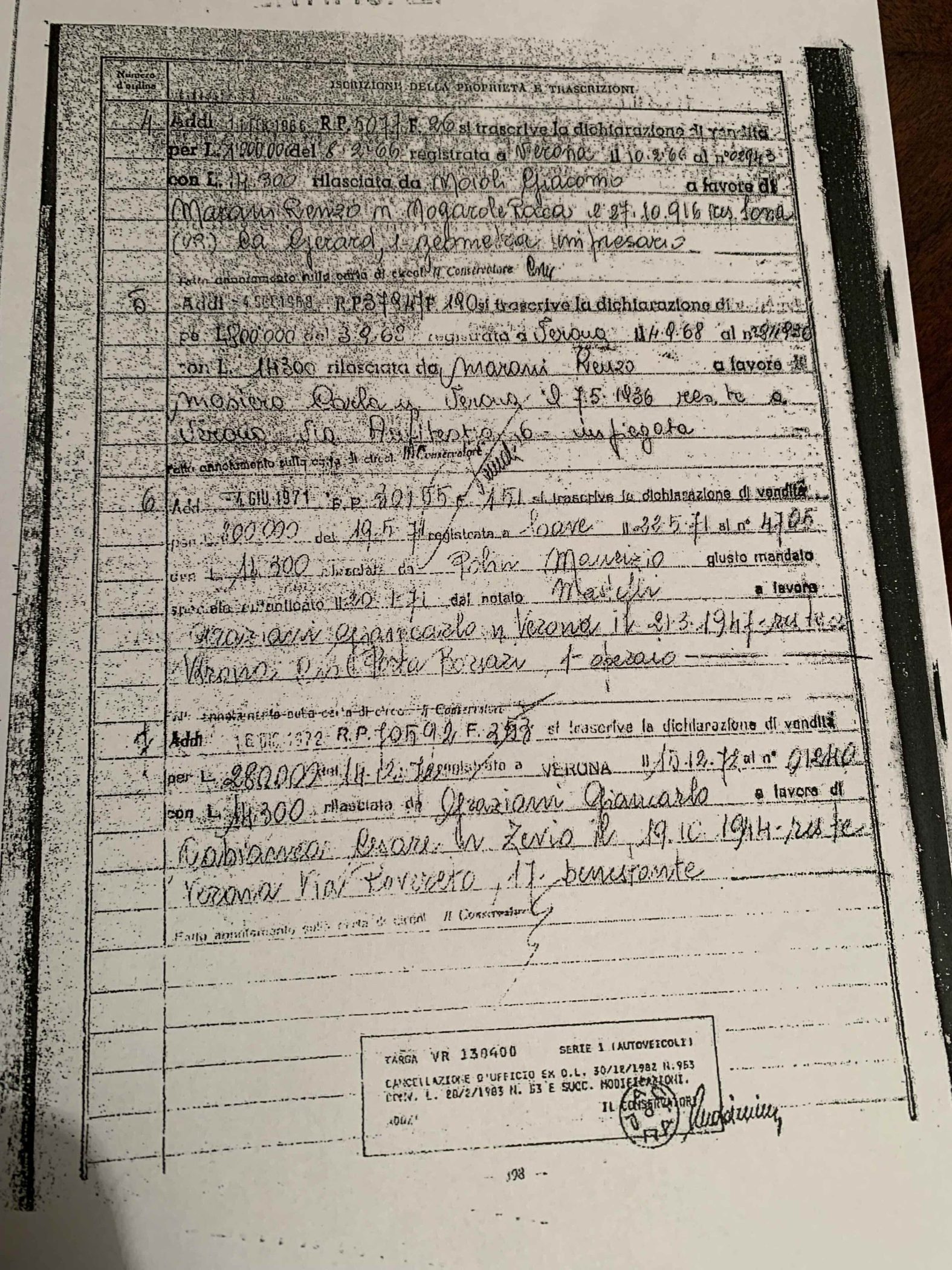 Egzemplarz z 1963 roku pierwotnie trafił na rynek włoski, gdzie użytkowany był przez kilka dekad. Aktualny właściciel posiada dokument, w którym wymienieni są  wszyscy właściciele z Włoch.