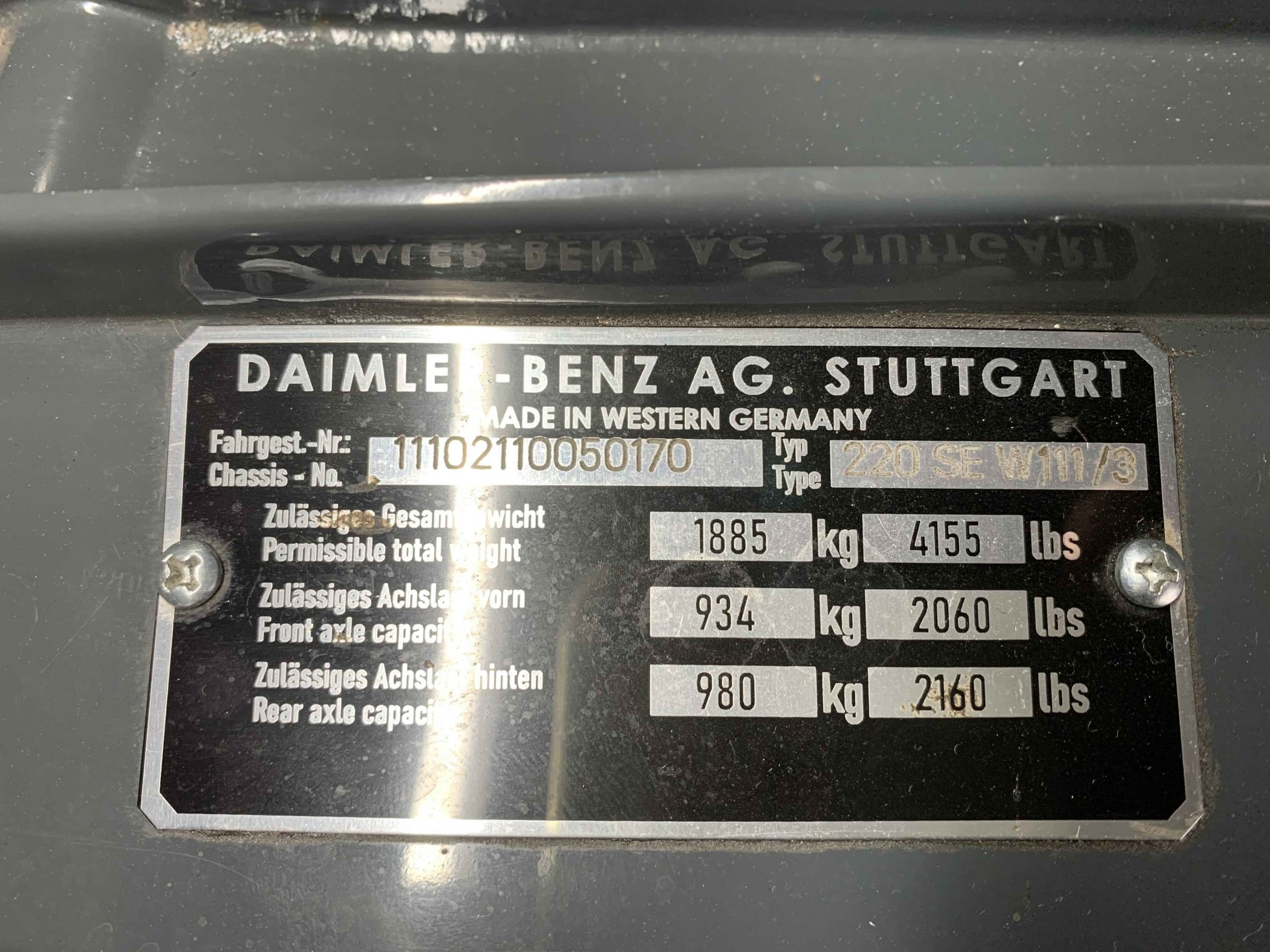 Technical Specifications – Mercedes-Benz W111 220 SEb Coupé 1963