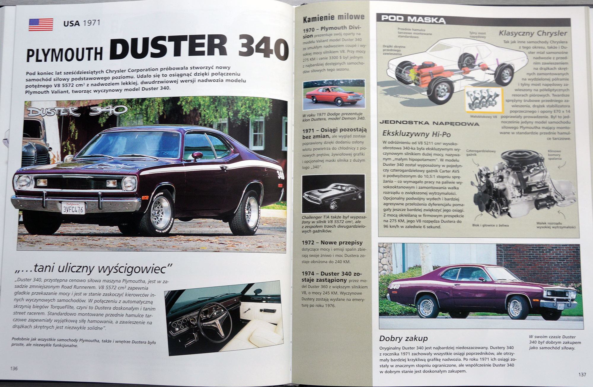 Książka koncentruje się głównie na okresie od połowy do końca lat sześćdziesiątych XX wieku, kiedy scena ulicznych wyścigów przeżywała okres swojej świetności, a niemal każdy rodzinny samochód był także oferowany w wyścigowym schemacie malowania i z chromowanymi obręczami kół. Poświęcona jest szczytowemu okresowi, zanim prawodawstwo dotyczące ochrony środowiska i odpowiedzialność zmusiły producentów samochodów do przerzucenia się ze zwierzęcej krzepy na ekologiczną łagodność. (…) Znajdziecie w niej także setki fascynujących faktów o produkcyjnej historii każdego z tych samochodów, w tym najbardziej szczegółowe, wyróżniające każdy z tych modeli spośród „stada”. (zob. Wprowadzenie, s. 7)