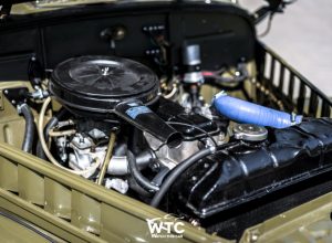 Po zakończeniu prac konstrukcyjnych przyszedł czas na lakierowanie. Samochód otrzymał nasz standardowy kolor, który doskonale podkreśla militarny charakter modelu GAZ 69. Zadbaliśmy również o detale wykończeniowe, które nadają pojazdowi autentyczny, klasyczny wygląd.