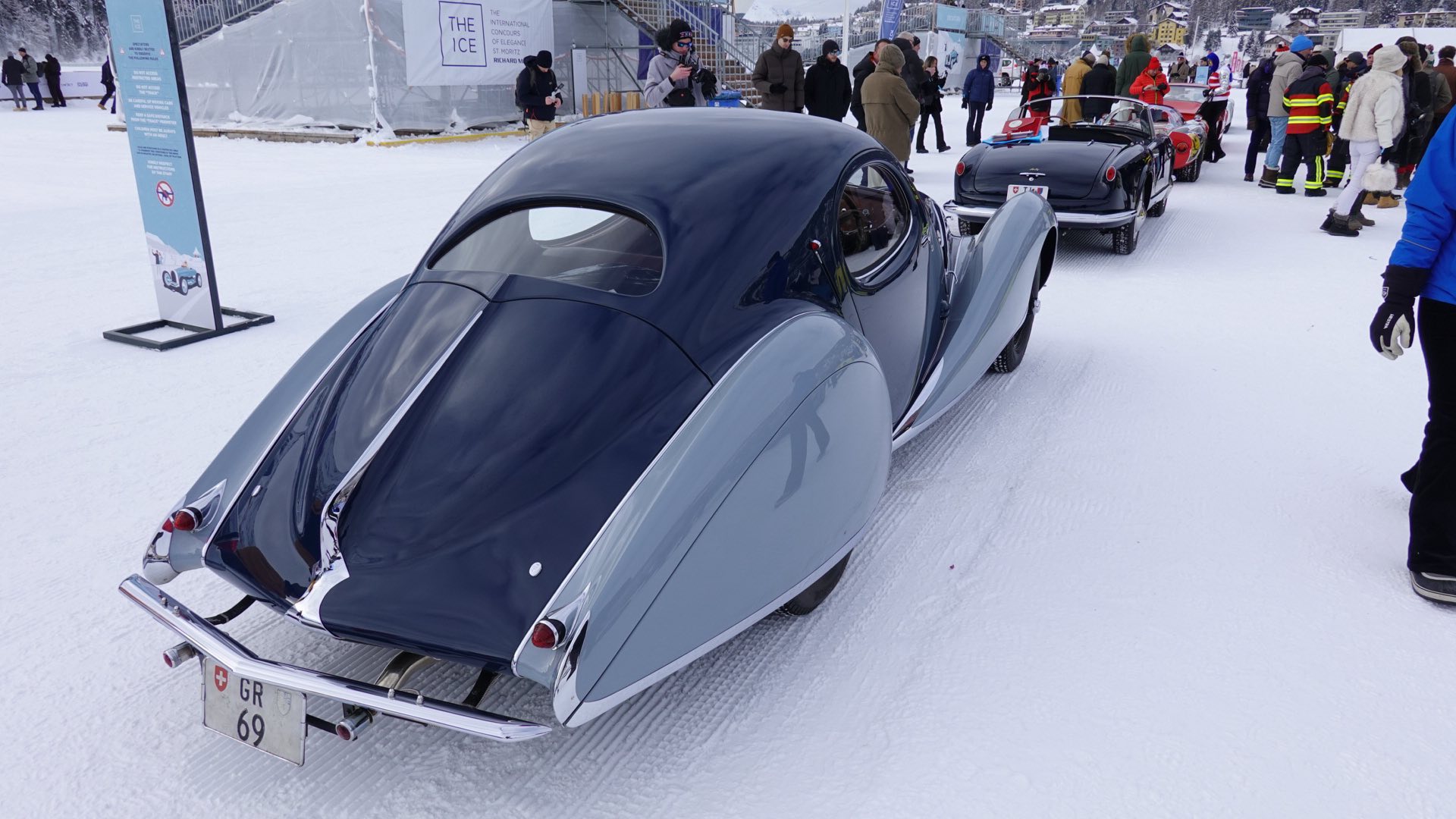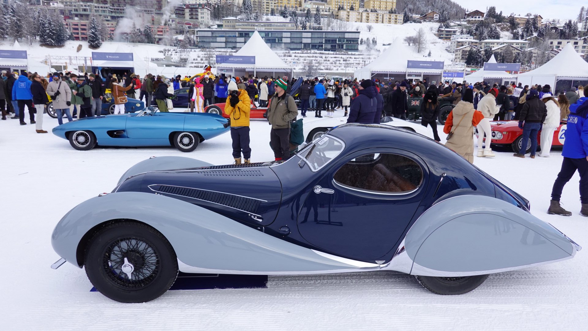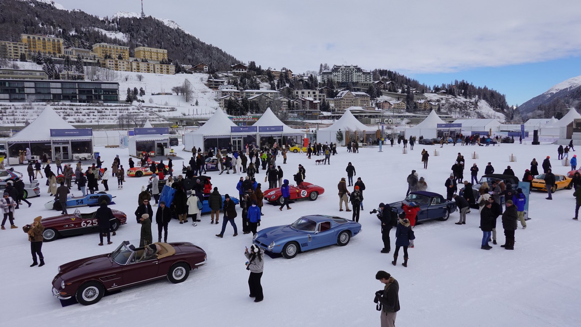 Około godziny 8:00 samochody uczestniczące w wydarzeniu wyjeżdżają z podziemnego garażu, o którym wspominałem w poprzednim artykule. Następnie, jeden po drugim, majestatycznie przemieszczają się na wyznaczone miejsca na zamarzniętym jeziorze w Sankt Moritz.