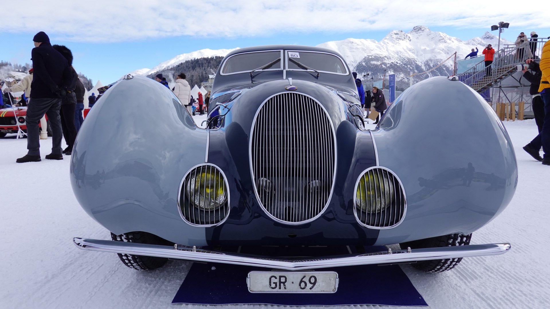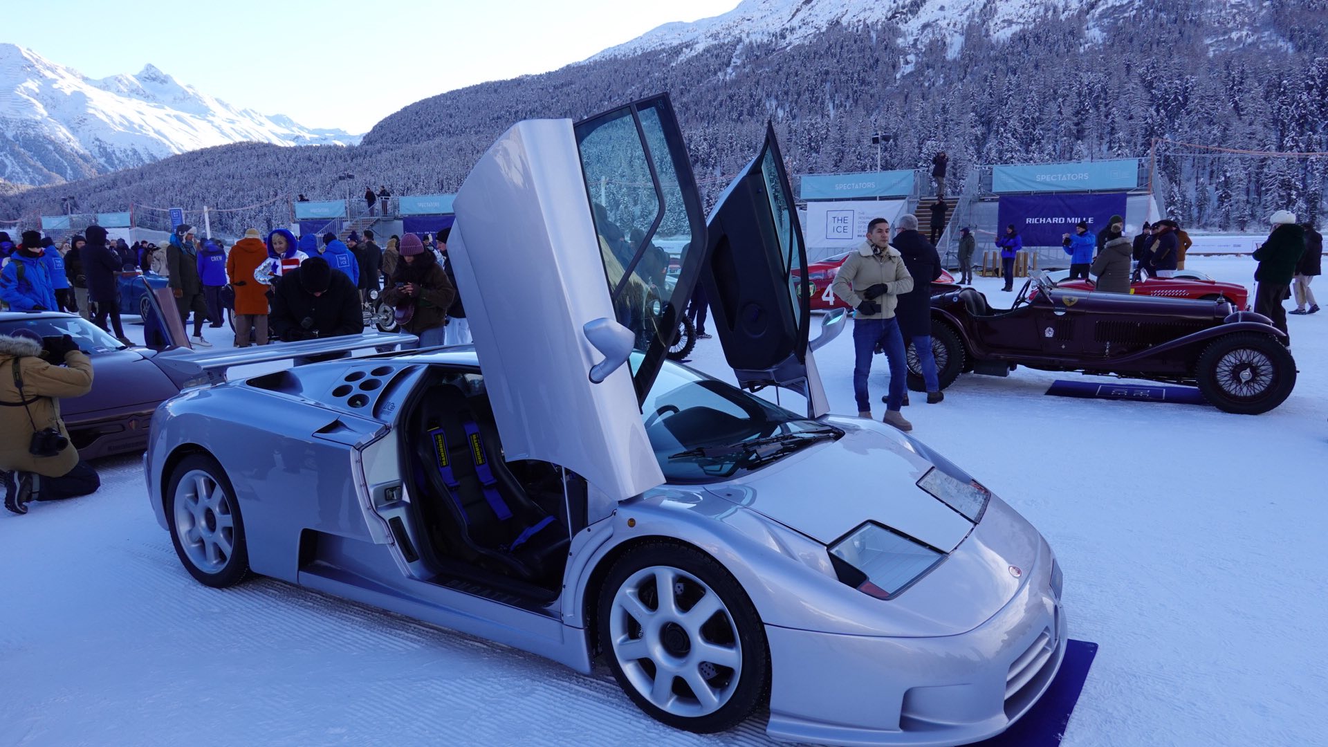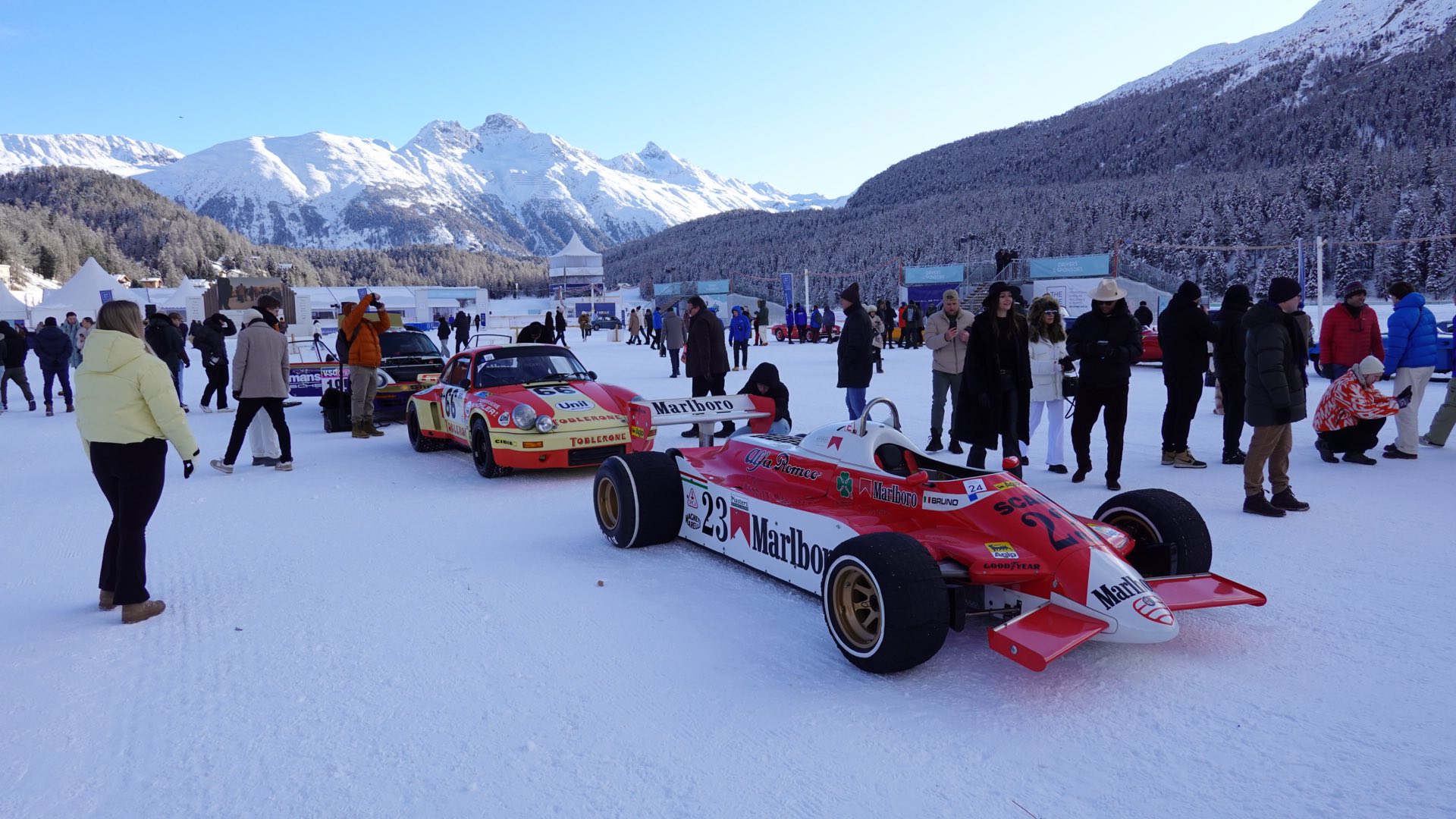 Około godziny 8:00 samochody uczestniczące w wydarzeniu wyjeżdżają z podziemnego garażu, o którym wspominałem w poprzednim artykule. Następnie, jeden po drugim, majestatycznie przemieszczają się na wyznaczone miejsca na zamarzniętym jeziorze w Sankt Moritz.