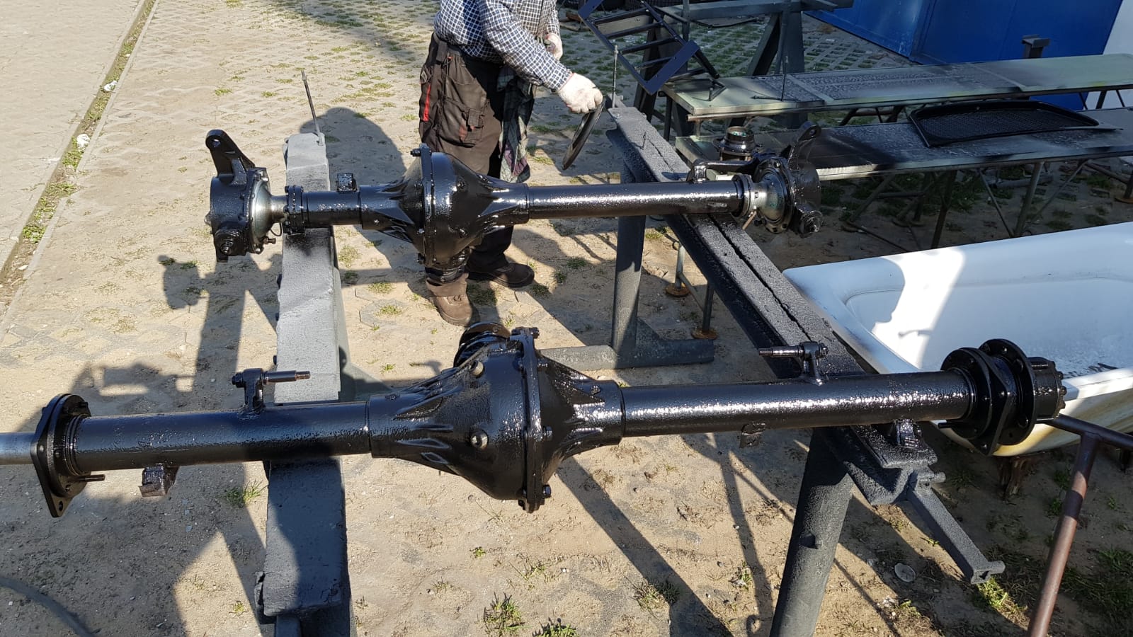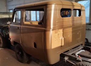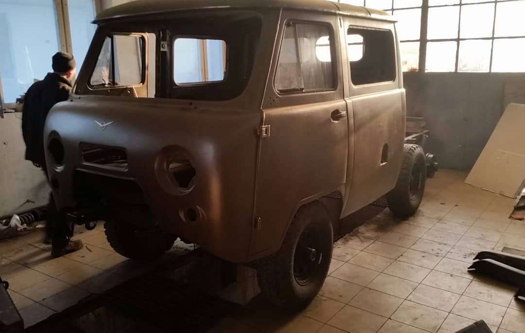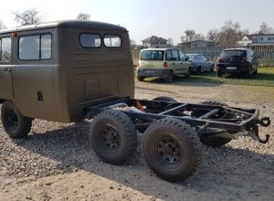 In this particular case, a foreign client contacted us with a request to modify the chassis of his UAZ 452 to a version with a powered third axle. He also ordered a double-cab body (known as “doka”) to be sourced, restored, and mounted – instead of the commonly seen BUS body type.