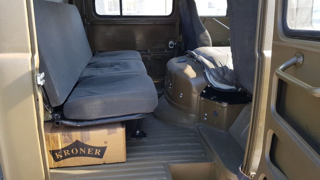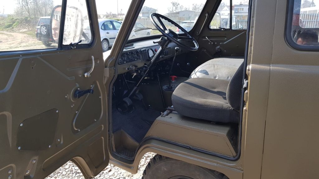 The vehicle was already equipped with a 2.5-liter Ford Scorpio V6 petrol engine. We combined it with a five-speed gearbox from a newer UAZ model, which significantly improved reliability and driving comfort.