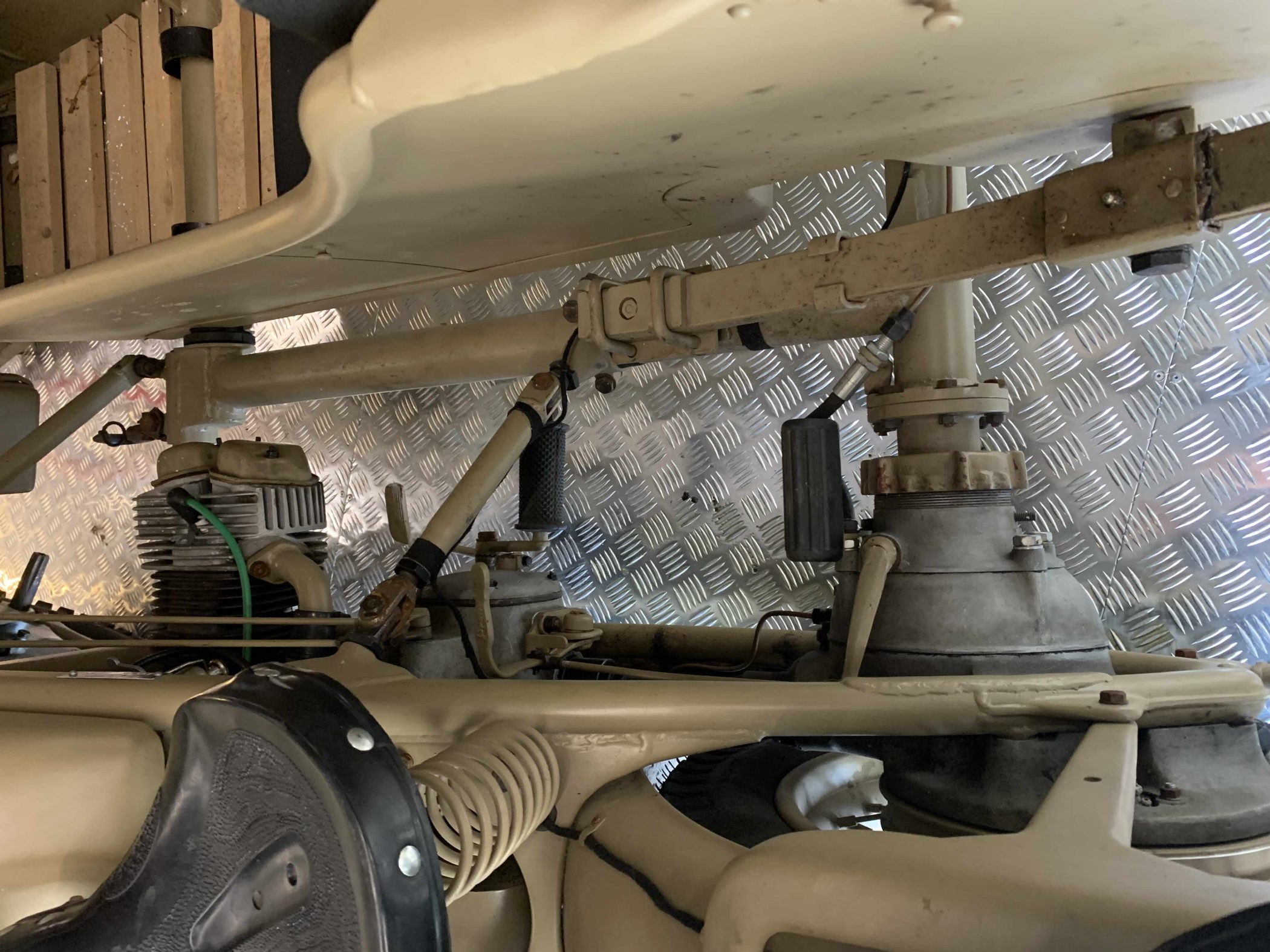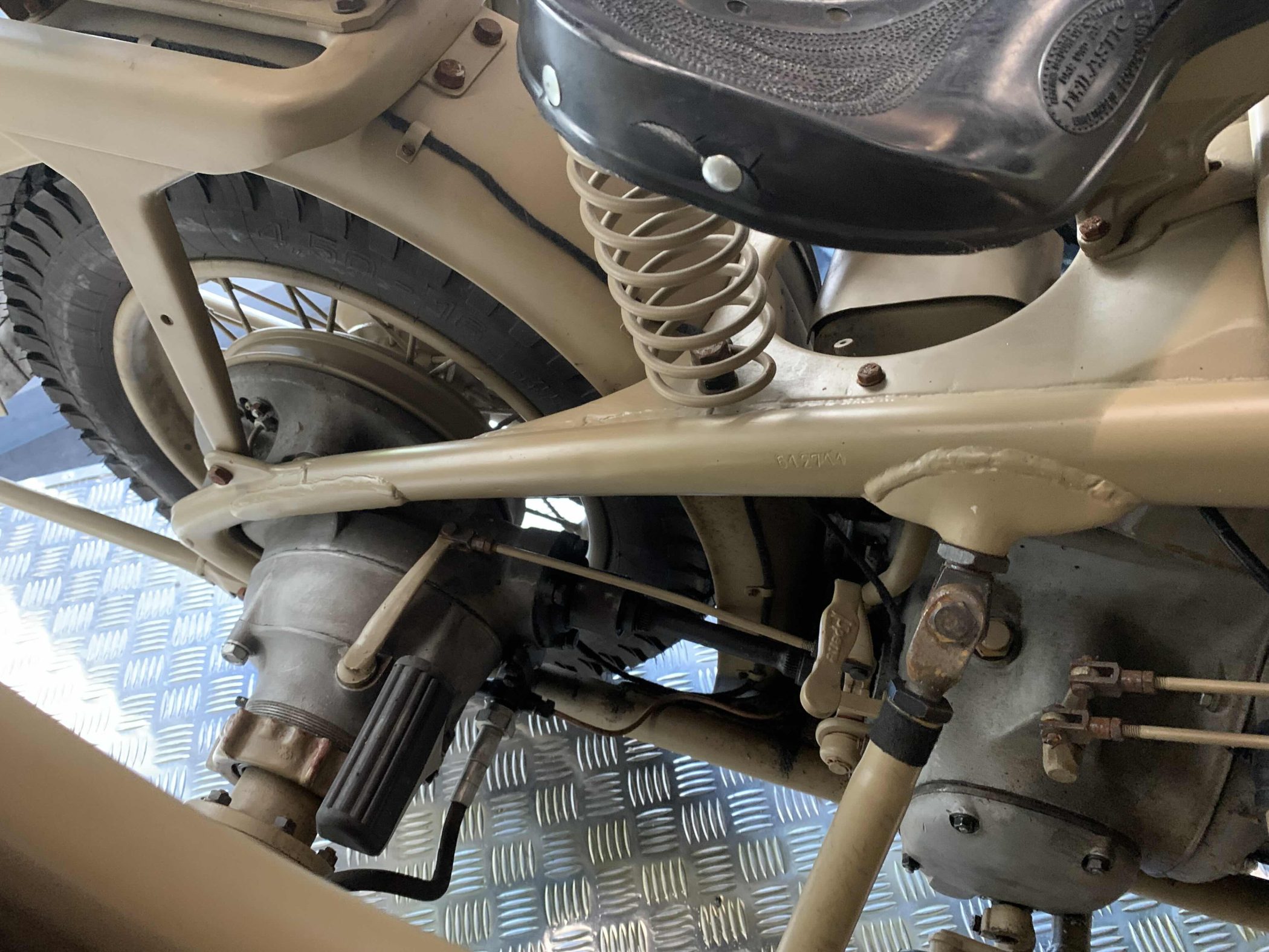 The motorcycle’s frame was built from oval-section steel tubing, providing exceptional rigidity and durability even under full load (three soldiers with equipment). A lockable differential allowed the machine to overcome difficult terrain obstacles that would stop most conventional motorcycles.